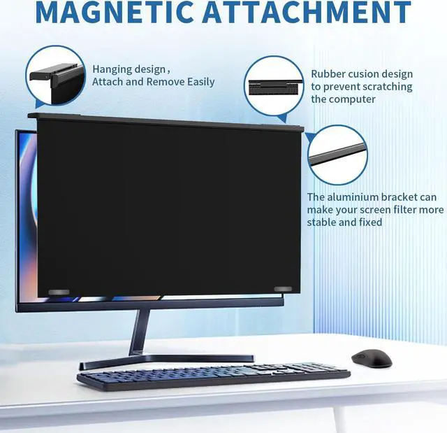 Ultra-Thin Magnetic Design & Easy Installation:Suction mounting, no adhesive sticker, 3 seconds to install; Ultra-thin design (only 2mm thickness), compatible with 16:9 Aspect ratio 24 inch computer monitor. The privacy screen of magnetic edges make it a breeze to secure to your computer monitor when privacy is needed, and you can easily remove the filter at any time when you do not need it.