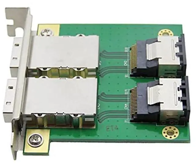 2-Ports SFF-8087 to SFF-8088 Adapter with Full PCI Slot Profile Mounting Bracket; External 8088 to internal 8087 adapter, will work both on the host and device side.
