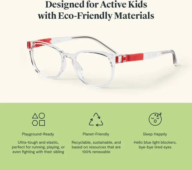 Meet June Running between round and narrow, our oval eyewear catches the best of both worlds: playing well with sharp facial features while playing up their beautiful little eyes. The perfect accessory for your little one to protect their eyes from harmful blue light emissions. Our glasses are specially designed to reduce eye strain and discomfort caused by long hours of digital screen time. The lenses of our glasses are crafted from high-quality materials that block out blue light emissions from electronic devices such as smartphones, tablets, and computers. This helps prevent headaches, eye fatigue, and disrupted sleep patterns resulting from prolonged exposure to blue light. Our glasses come in a range of fun and stylish designs perfect for children of all ages. The frames are made from durable materials that can withstand the wear and tear of daily use, and the lenses are scratch-resistant for added durability. Whether your child is doing homework, playing video games, or watching their favorite TV show, our Kids Blue Light Glasses provide a practical and stylish way to protect their eyes from the harmful effects of blue light.