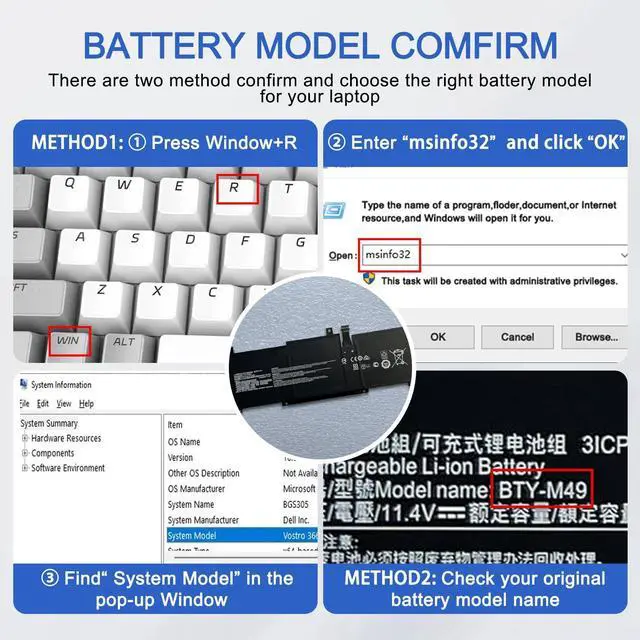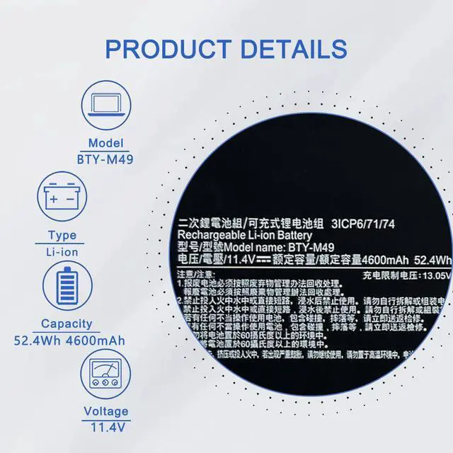 SpecificationsBattery Model :BTY-M49Voltage: 11.4V ; Capacity: 11.4V 52.4Wh 4600mAh; Battery Type:Lithium ion