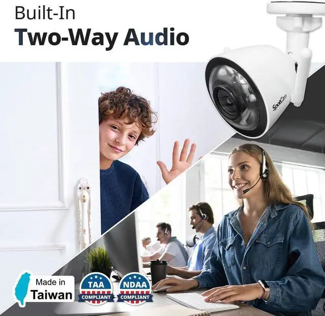 [2.5K RESOLUTION, 4MP IMAGE SENSOR, NIGHT VISION, IP66 WEATHERPROOF, DUAL BAND WIFI] 123.6 degrees wide viewing angle 4MP image sensor with 2.5K resolution and NDAA and TAA compliant. Equipped with high-power IR LEDs automatically provides a stunning clear night vision that can see up to 98ft (20-30m). IP66 for indoor and outdoor use. Flexible connection options, ethernet or 2.4G/5G WiFi keep an eye for you anytime.