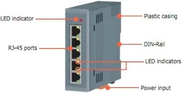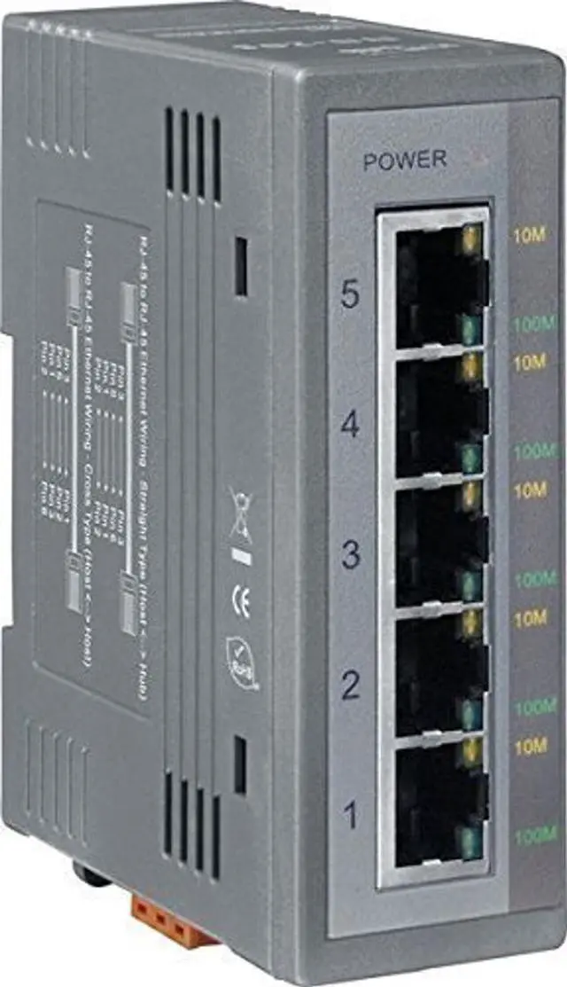 The NS-205 has 5 Ethernet switching ports that support 10/100 base-tx, with a 10/100M auto-negotiation feature and auto MDI/mdi-x function. It can connect 5 workstations and automatically switches the transmission speed (10 Mbps or 100 Mbps) for corresponding connections. The flow control mechanism is also negotiated. There is activity/link/data rate LEDs for each port to aid trouble-shooting. Port connectors are shielded RJ-45. It contains" soft start" function with overload protection, high-low voltage protection. The width of the NS-205 is just 33 mm, so it can be used where space is important.