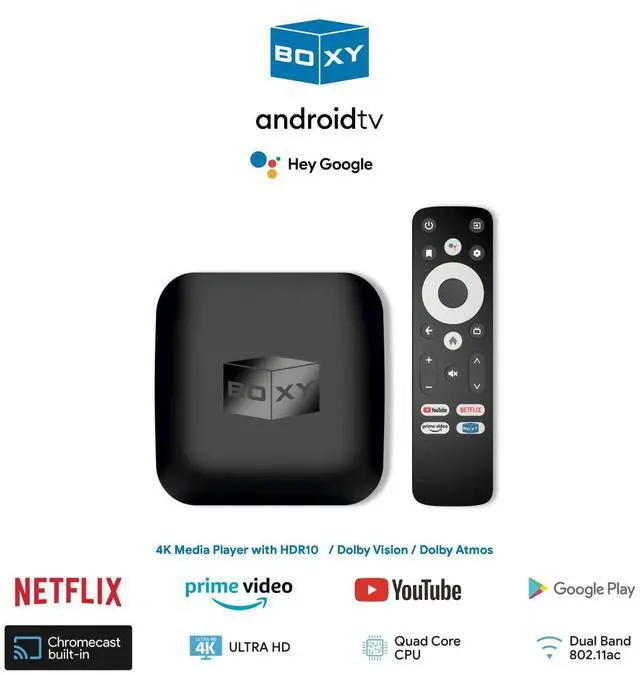 BOXY Android TV Box, Streaming Media Player 4K, Dune HD Media Center, Mini PC, AV1, USB 3.0, Ethernet, MKV/ISO DV P7 FEL AFR, HDR10+, DTS, Netflix in 4K Dolby Vision & Atmos, Voice