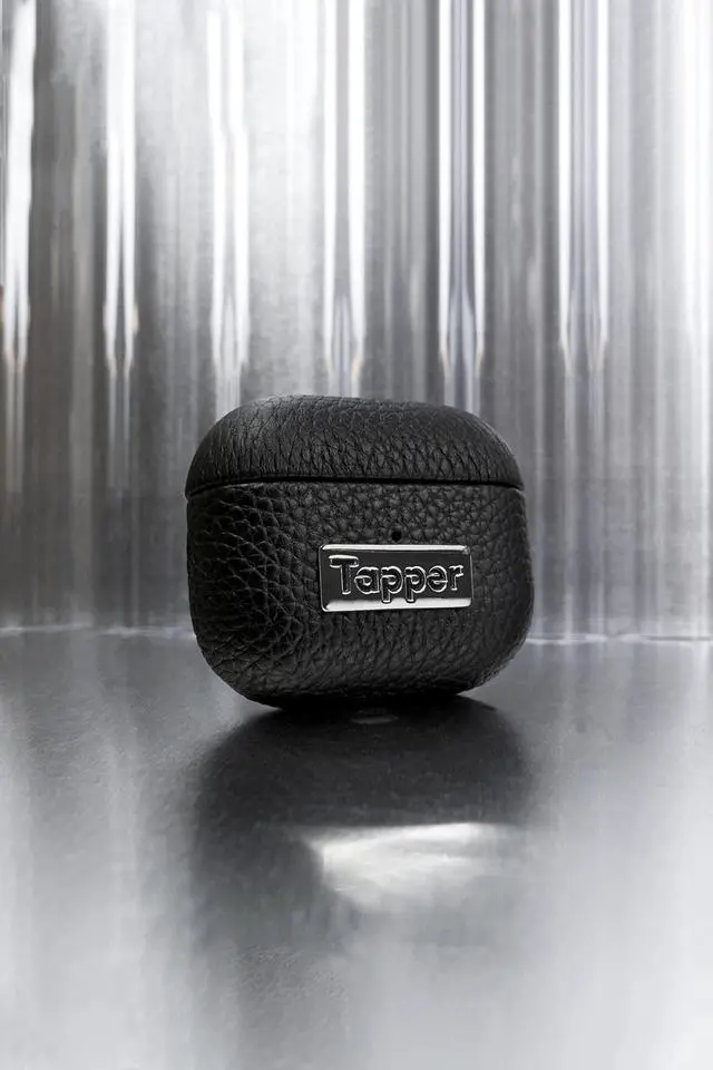 A luxe leather case with a metal logo plate in hematite black plating that protects and elevates the look of your AirPods. Compatible with AirPods (3rd generation) and inductive charging. Designed in Sweden.