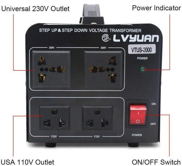 2000 Watts Step Up/Down Voltage Transformer Converter. Step Up Voltage from 110-120 Volts to 220-240 Volts. Step Down Voltage from 220-240 Volts to 110-120 Volts.