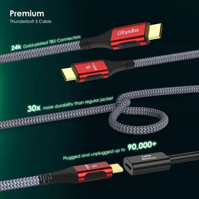 Dual 8K / Triple 4K 144Hz Display: 240W USB C cable for Thunderbolt 5 cable 3.3ft is capable of supporting dual 6K 60Hz or dual 8K 60Hz displays, or even triple 4K 144Hz, providing crystal-clear visuals and an immersive viewing experience. Gamers can enjoy gaming in stunning 4K resolution at various refresh rates, including 540Hz, 240Hz, and 144Hz, ensuring smooth and fluid gameplay. Note: Please ensure that your device supports it.