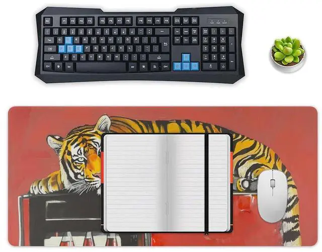 PailailaiNest Tiger Large Mouse Pad Mousepad Funny Retro Red Animal Mouse Pad Desk Pad Mat Desk Mat for Keyboard Computer Pad for Gaming Home Office Supplies 40x90cm