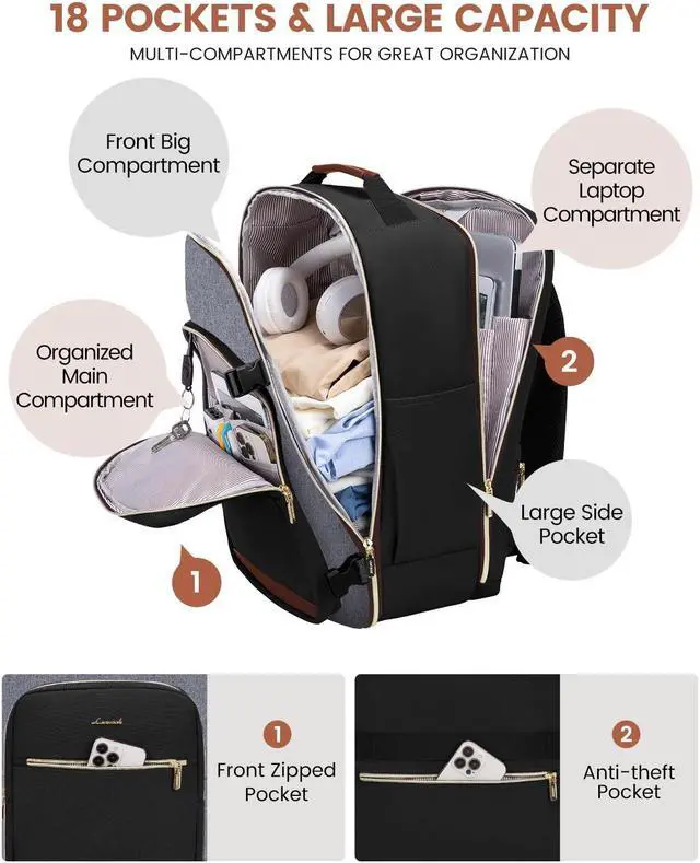 Versatile & Airline ApprovedMeasuring 19.5*14*8 inches, this carry on backpack fits under the seat or in the overhead compartment, approved by Spirit, Frontier, JetBlue, and other budget-friendly airlines, making it the perfect personal item for air travel.