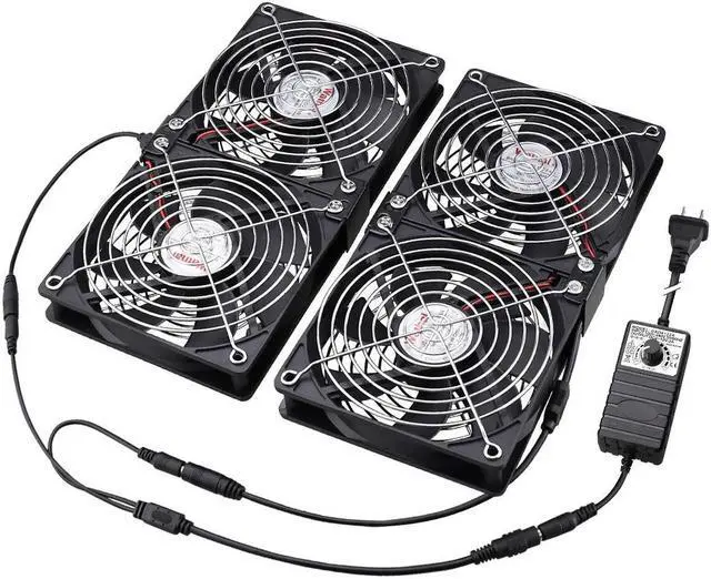 Wathai 4 x 120mm GPU Mining Rigs Server Racks Fan with 100V - 240V AC Power Variable Speed Control, Big Airflow for DIY Cooling and Ventilation AV Cabinets, TVs Routers. Audio Amplifier, Refrigerator
