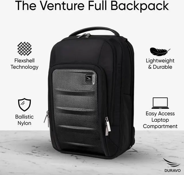Duravo Venture Full Laptop Backpack, Durable, Sleek, Flight Approved, Fits Up to 17" Laptop, Breathable, Lightweight (Carbon, Full)
