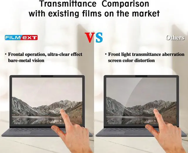 Upgrade Full Removable Surface Laptop 13.5 inch Privacy ProtectionFILMEXT Upgrade Full Removable Surface laptop privacy screen 13.5 inch is perfectly fit Surface Laptop 2/3/4 13.5", Surface Privacy Screen filter shows a black edge with removable Nano-silicone seal, easy on and off, bubble free design.