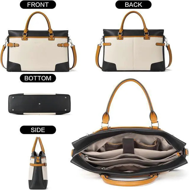 Versatile Design : Carry it by hand, over the shoulder, or crossbody. Reinforced leather handles add strength and prevent wear. The adjustable leather strap allows a custom fit, while the chic tag detail enhances its sophisticated, streamlined look. This briefcase for women combines a cost-