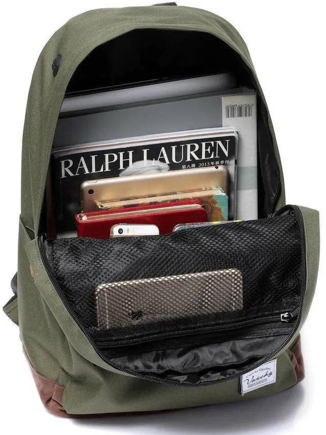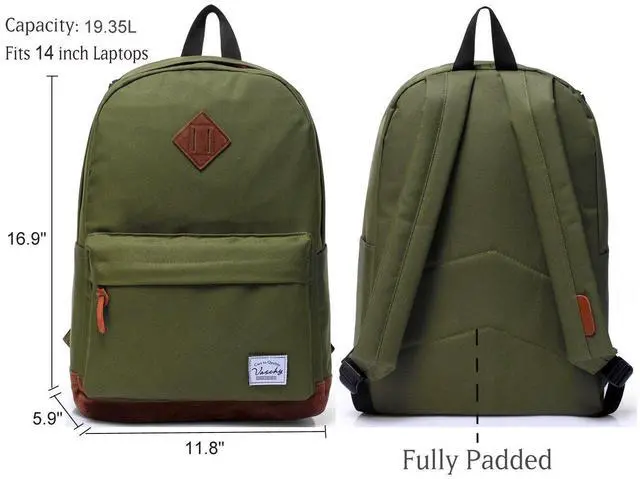 VASCHY Unisex Classic Lightweight Water-resistant Campus School Rucksack Travel BackPack Green Fits 15.6I nch Laptop