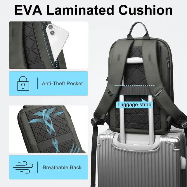 Mens Backpack Slim Business Backpack with USB Charging Port Lightweight Computer Backpacks for 16 Inch Laptop Bag Water-Resistant Anti-Theft Daypack for Daily Office Work College Travel-Green