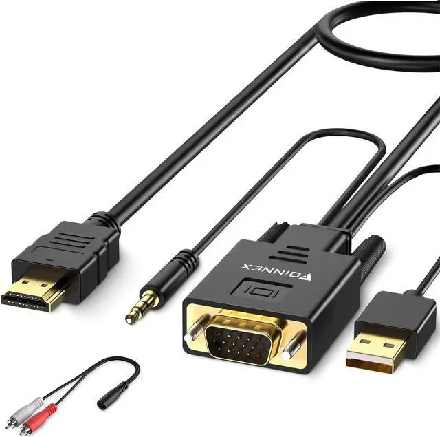 FOINNEX 10Ft VGA to HDMI adapter cable offers you a convenient way to connect Old style PC, Notebook,Desktop computer with VGA (D-Sub ,HD 15 pin) output to displays such as projector, monitor, TV or display screen with HDMI. Male to Male