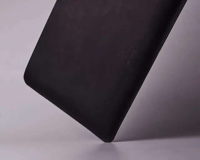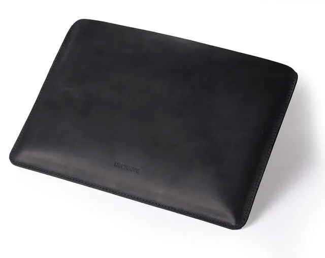 Premium Crazy Horse Leather Made from genuine full-grain leather, this black sleeve features a waxed finish that reveals a rich texture and deepens in character over time with daily use.