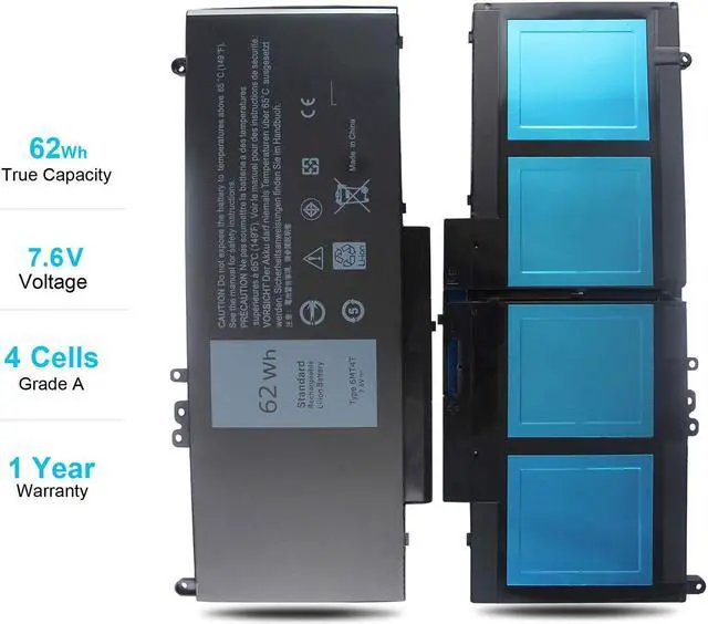 SPECIFICATION : Model Name: 62Wh Standard Rechargeable Li-ion Battery Type 6MT4T; Battery Type: Li-polymer; Voltage : 7.6V(also work for 7.4v); Capacity : 62Wh; Cells: A+ 4-cells; Life span: Around 300-500 discharge per charge cycles; Battery size: about 9.17x3.73x0.27inch; Weight: about 11oz / 0.69lb; Condition : 100% New;