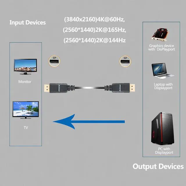 Anbear DisplayPort to Displayport Cable 6 Feet, Gold Plated Display Port to Display Port Cable 4K@60HZ Resolution (Male to Male) for DisplayPort Enabled Desktops and Laptops to Displays (5 Pack)