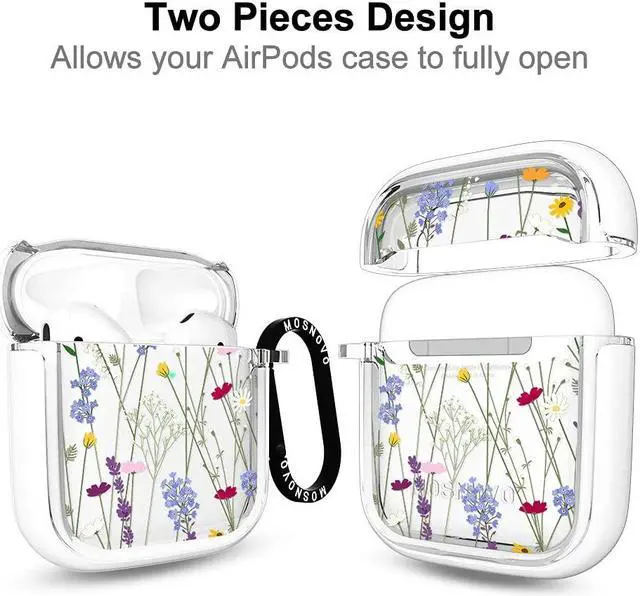 MOSNOVO Case for Airpods 1 & Airpods 2, Protective Clear Case with Shockproof Dual Layer Hard Luxe Metal Ring Designed for AirPods 1&2 Generation - Floral Garden