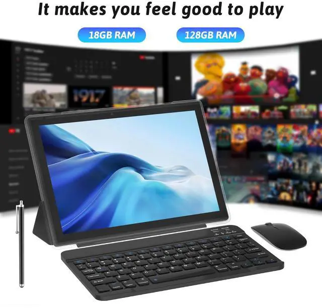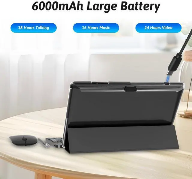 2 in 1 TabletThe tablet comes with a Bluetooth keyboard, wireless mouse, and foldable protective case, allowing you to flexibly transform the tablets into laptop mode or computer mode.