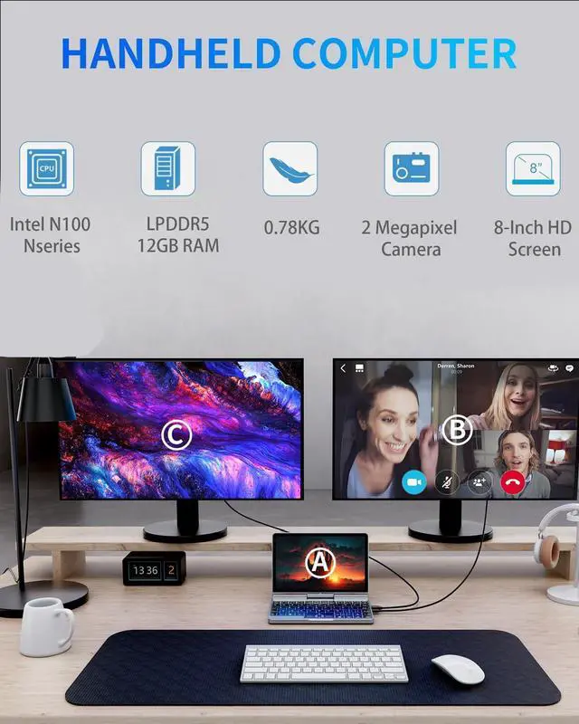 Ultra-Portable Design: This 8-inch mini laptop weighs only 0.78kg, easily fitting into your pocket, backpack, or gym bag. As a handheld laptop, its incredibly convenient for on-the-go use, offering the perfect balance of portability and functionality typical of a laptop small size.