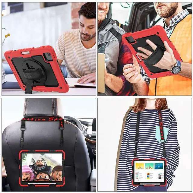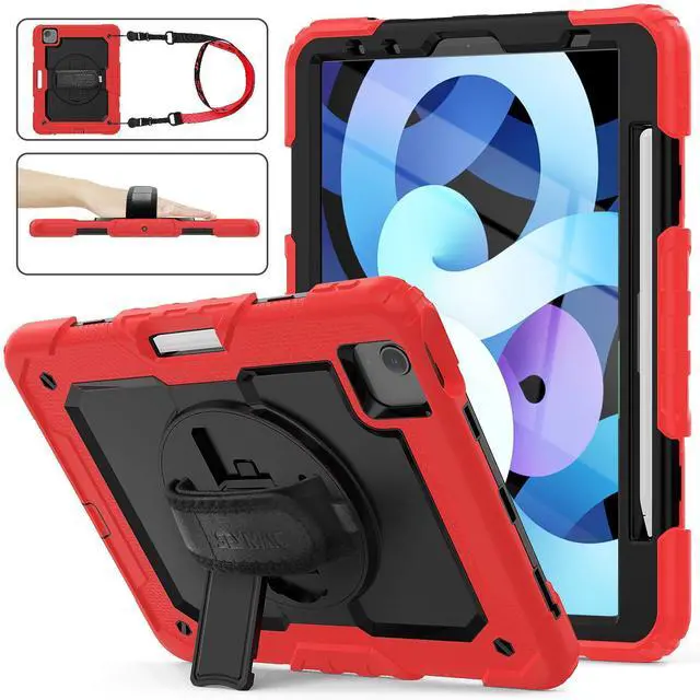 SEYMAC stock Case for iPad Air 5th/4th Generation/Pro 11 (4th/3rd/2nd) with Screen Protector Pen Holder, 360° Rotate Hand Strap/Stand Case for iPad Air 5th/4th Gen 10.9 ''/ Pro 11'' (Black+Red)