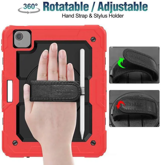 SEYMAC stock Case for iPad Air 5th/4th Generation/Pro 11 (4th/3rd/2nd) with Screen Protector Pen Holder, 360° Rotate Hand Strap/Stand Case for iPad Air 5th/4th Gen 10.9''/ Pro 11'' (Black+Red)