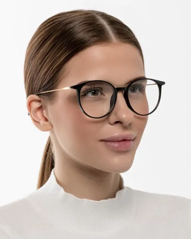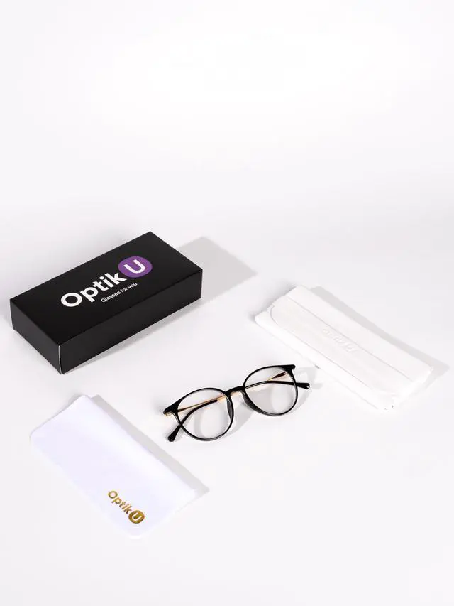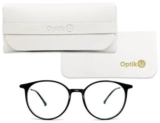 Optik U Blue Light Blocking Glasses for Women Round Frame (Black)