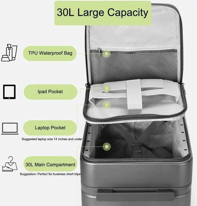 BUILT-IN CUP HOLDERThe laptop briefcase features a built-in cup holder.This design is conveniet to drink when you walking on the way.Expandable Carry-ons case is 2.53KGS and 32*26*45 CM.