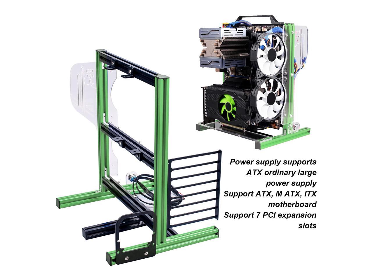 Computer Case Computer Chassis Open Frame Aluminum Computer Open Case Bracket PC Vertical DIY Frame Open Air Gaming Computer Case Chassis for ATX, M ATX, ITX Motherboards (Green Black)
