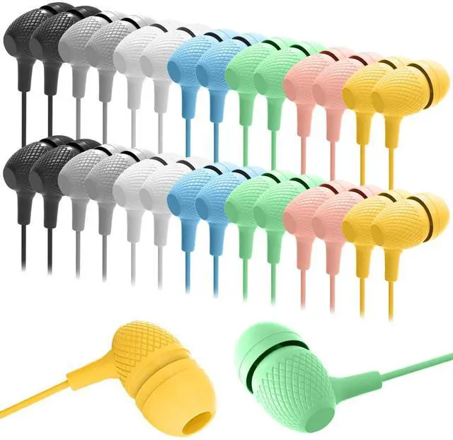 Wensdo Kids Earbuds Bulk 200 Pack Macaron Colors Mixed, Durable Earphones in-Ear Headphones Perfect for Schools Classroom Students Teens Children Gift and Adult
