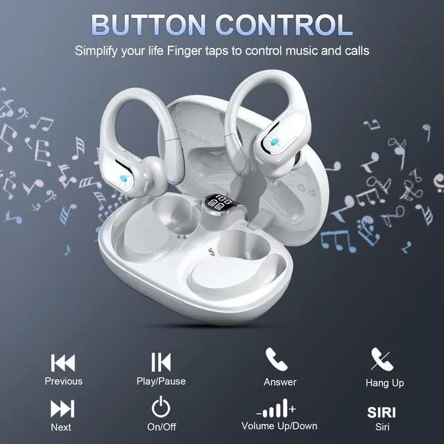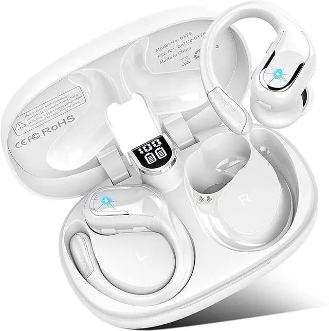 75Hrs Playtime & Digital LED Displays: BX29 wireless earbuds white come with a compact charging case, providing 75 hours of total listening time. Each bluetooth headphones offers up to 15 hours playback on a single charge, the small case can provide an additional 4 full charges. The LED display keeps track of the cases remaining power in real-time and charging status of earbuds wireless bluetooth, so you are never caught off guard by low battery through workout or daily routine.