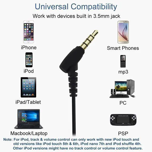 The angled gold-plated plug is compatible with audio deivces with 3.5 mm jack: iPhone, iPod, iPad, Macbook, android smartphones like Samsung, LG, Nexus phones, tablet, mp3 players, laptop, etc.
