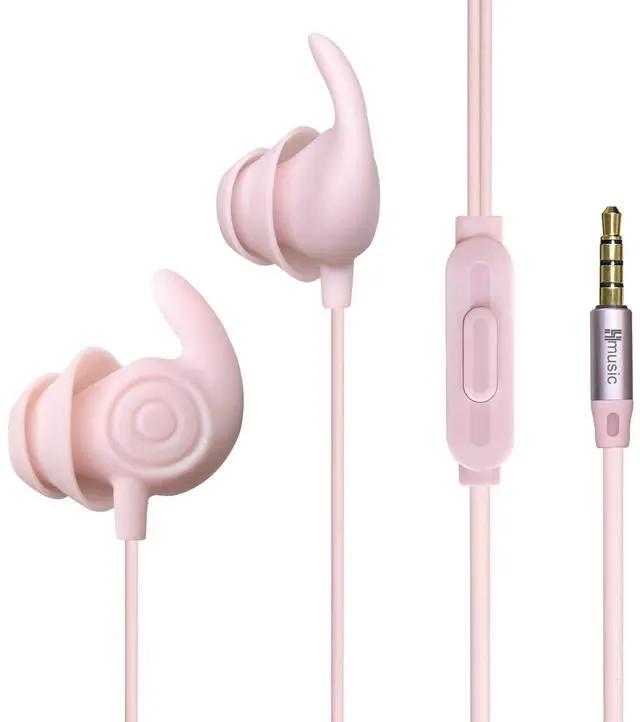Hmusic Sleep Earbuds, Wired Sleep Headphones, Ultra Lightweight Soft Silicone Sleep Earplugs 3.5 mm Headphone with Mic for Side Sleeping, Yoga, Travel, Meditation (Black)