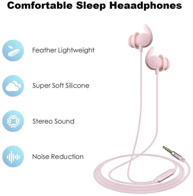 Lightweight & Soft Sleep Earphonesthe earplugs are made of ultra soft silicone, it is ultra lightweight so that you can't even feel it in ear even when you are side sleeping. Perfect sleep earbuds for side sleeper.
