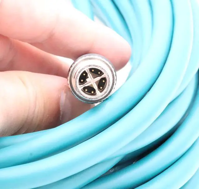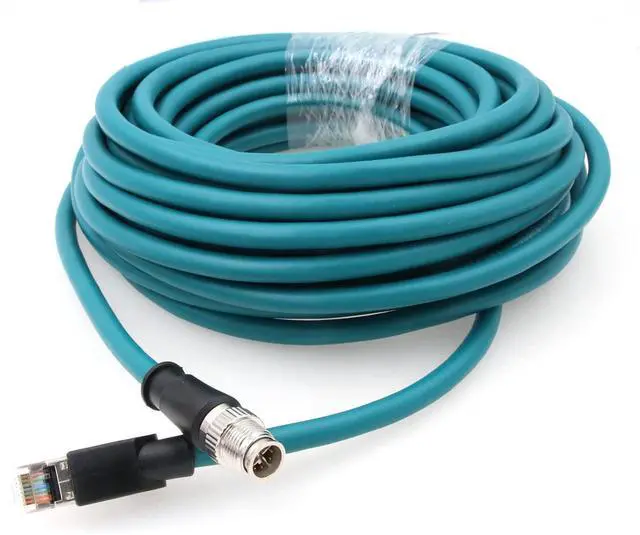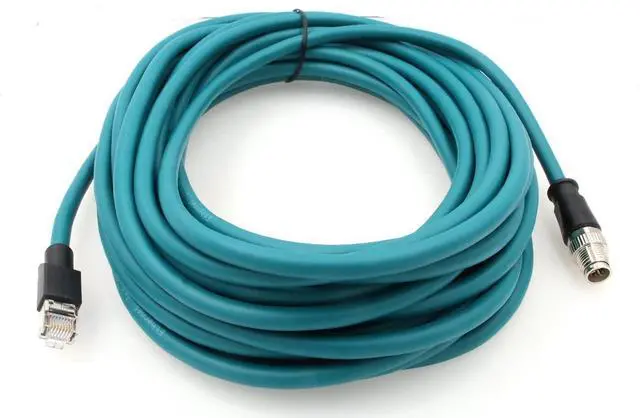 This M12 8 Pole X-Code Male to RJ45 Cat6a Ethernet Shielded Cable is usde for Industrial Machinery, Ethernet, network applications, Matrix Vision, Triton camera models, GigE Vision ,basler AVT Sony Cognex CCD cameras.
