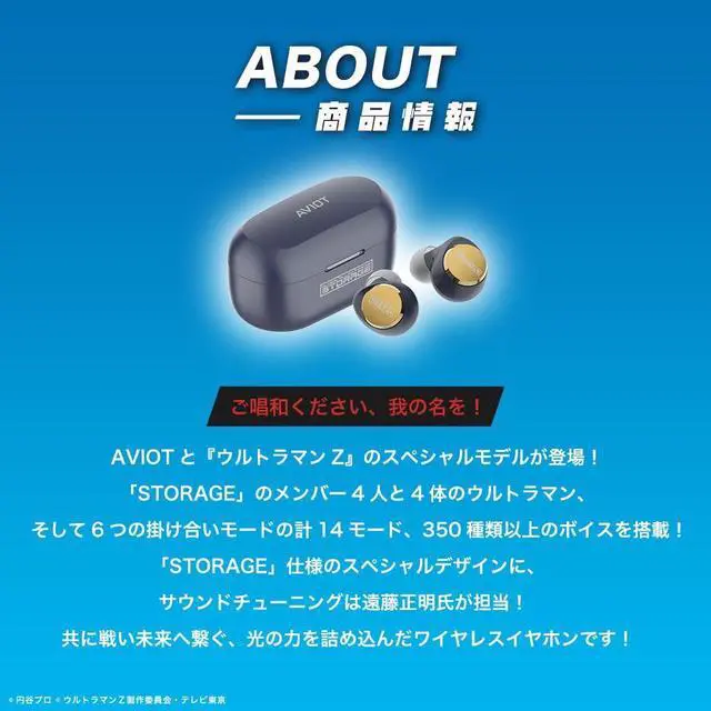 AVIOT TE-V1R-ULZ Ultraman Z Collaboration Wireless Earbuds, Special Package, Design, English & Japanese Special Voice, Adaptive Noise Cancelling, Wireless Charging Case, Bluetooth 5.3
