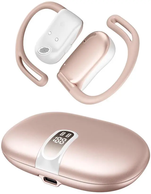 NEOQOQO Open Ear Headphones, 0.28 oz Lightweight Next-Gen Bluetooth 5.4 Air Conduction Wireless Earbuds w/Extra Bass, 48H Playtime, 3 EQ Modes, ENC Mic, IPX5, Snug Fit for Workout Running Gold Rose
