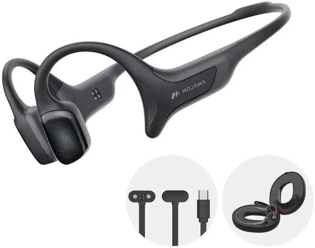 Mojawa HaptiFit Terra Open Ear Bluetooth Bone Conduction Headphones, Headphone Storage Bag and Extra Charging Cable, Waterproof Wireless Earphones with Mic and 32GB MP3, for Workouts, Swimming and Run