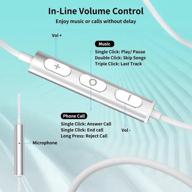 Microphone & In-Line Volume Control: The USB C headphones built-in high quality microphone, there is no noise interference during calls, can hand free calling, easily answer/end calls; The control button allow you to play/pause songs, skip next/previous song without picking up your phone, easy access to volume control