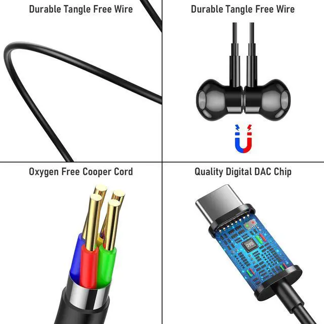 AFGHOA 5 Pack USB C Anti Dust Plugs and Wired Earbuds Magnetic 3.5mm Jack Earphones
