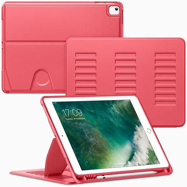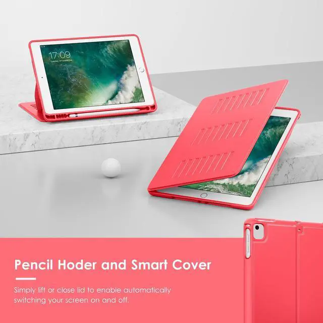 VIKESI Case for iPad 6th / 5th Generation (2018/2017 Released) 9.7 -inch and for iPad Air 2/1, Multiple Angles Magnetic Stand Cover, Shockproof Soft Back, Pencil Holder, and Auto Sleep/Wake, Red