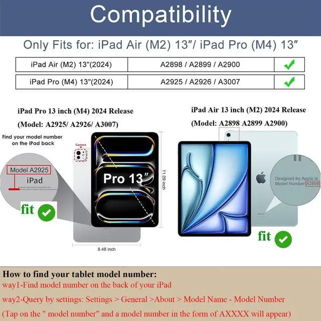 Compatible with Apple iPad Air 13 inch M2 2024 Release, (Model