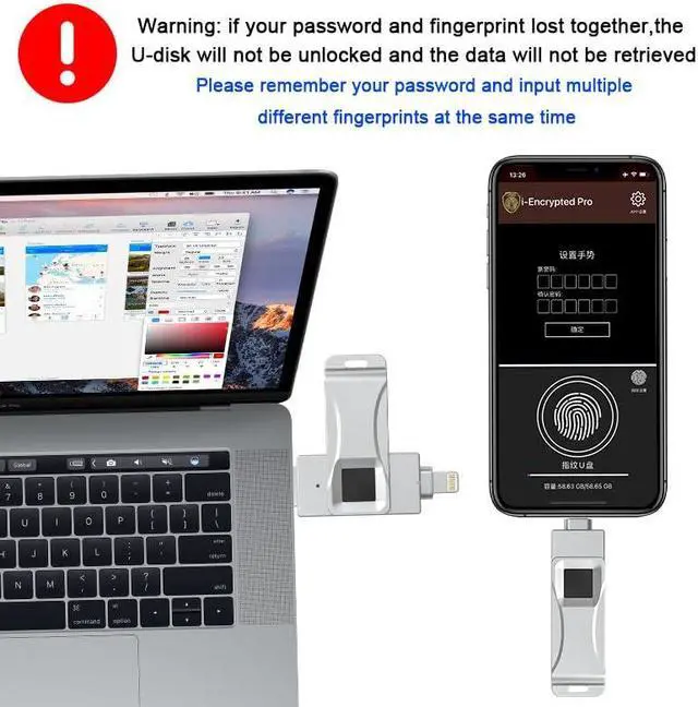 This is a fingerprint encrypted flash driver designed for Apple iOS iPad and iPhone models. It can set personal passwords and fingerprints for your flash drive to protect your personal files on the flash drive. The password and fingerprint are stored in the flash drive, and only your password and fingerprint can open this flash drive. If the flash driver is lost, there is no need to worry about the files in the flash driver to be leaked. (Only support to set fingerprints and passwords on iOS devices)