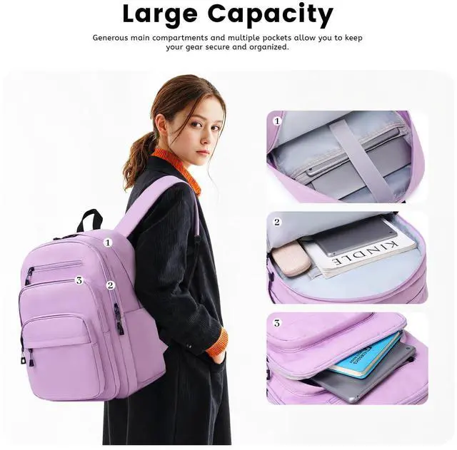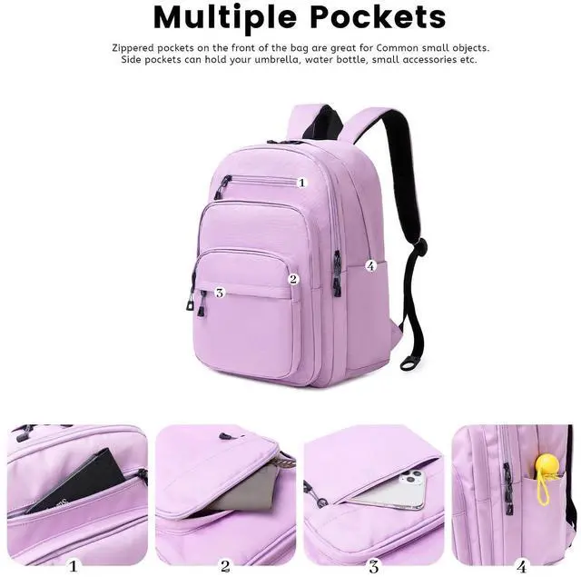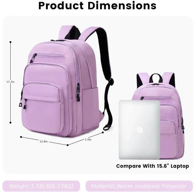 Lanola Basic Multi-Pocket Multipurpose Backpack Classical Water Resistant Student Bookbag For School Business Travel or Casual Daypack Backpacks For Men Or Women - Purple