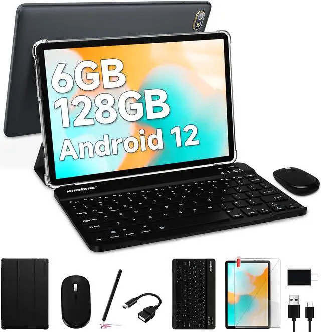 kinstone Android Tablet 10.1 Inch with Keyboard, 6GB RAM, 128GB ROM, 1TB Expansion, 2 in 1 Octa-Core Tablet, 5G WiFi & 2.4G WiFi, 6000 mAh Battery, Dual Cameras, Bluetooth/Mouse/Case/GPS