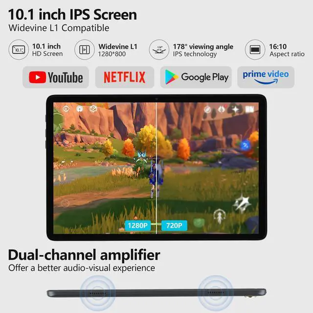 Feast your eyes on a 10.1'' inch FHD IPS Display, rounded into form by an optimised 16:9 aspect ratio, and rendered in gorgeous detail by 1280*800 resolution. The HD touch screen provides ac