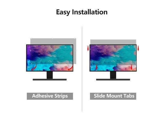- Two Attachment Options: This screen filter offers two simple attachment options for your convenience. Option 1 uses clear adhesive strips that securely attach to any screen for a strong and durable hold. For easy installation and removal, option 2 uses slide mount tabs. Choose the method that works best for you and experience superior protection and privacy for your device.