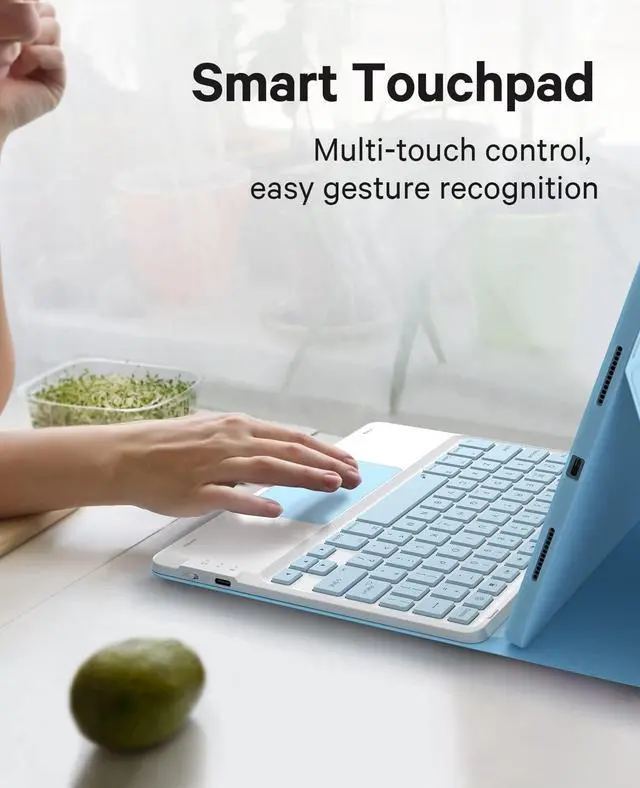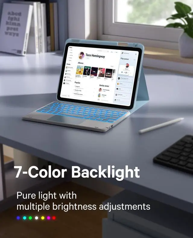 [7-Color Backlit]: Easily switch between 7 gorgeous colors and 3 brightness with a simple touch. You can adjust the keyboard to your favorite color according to your preferences, and easily make your iPad Air 5th Generation case with keyboard more stylish. It is also convenient for keyboard operation under dim light, and it can also bring you a different visual enjoyment and comfortable typing experience with your iPad.