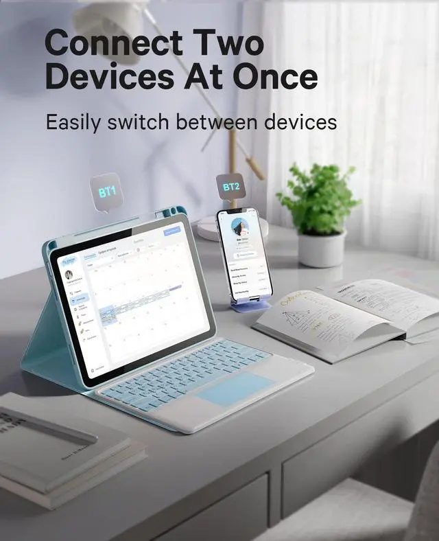 GreenLaw for iPad Air 11 inch Case with Keyboard (M2/2024) & iPad Air 5th/4th Gen 10.9 inch (2022/2020), 7-Color Backlit, Stain Resistant Case, Dual-Device Connection Keyboard with Trackpad, Blue
